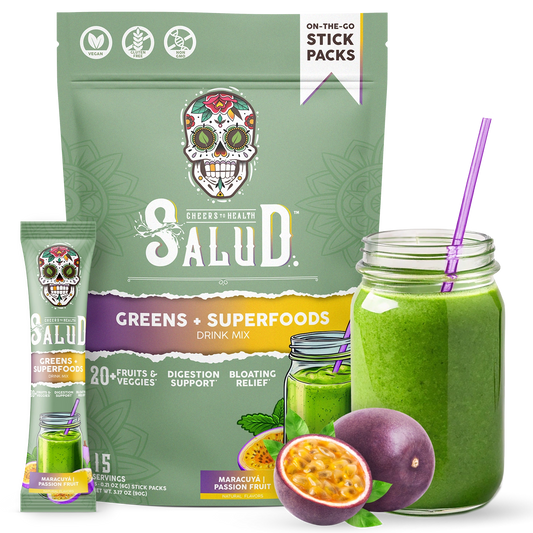 Inspired by traditional jugo verde, our new Passion Fruit flavor delivers a full serving of organic veggies + bloat and digestion support.