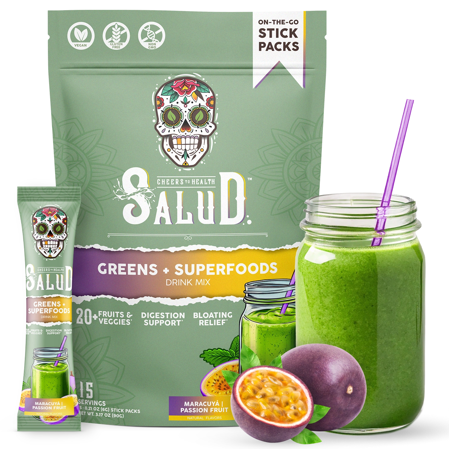 Salud Greens + Superfoods is versatile and can be consumed any time during the day. We recommend taking it in the morning to start your day, or as a mid-day boost to support digestion, reduce bloating, and keep your energy levels steady.